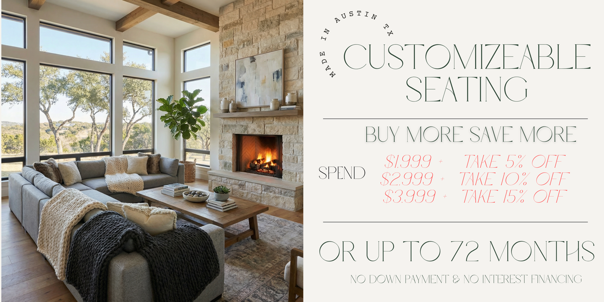We don't order from a warehouse — we build your furniture right here in Austin. That means faster delivery, better quality control, and the ability to customize every piece exactly the way you want it.